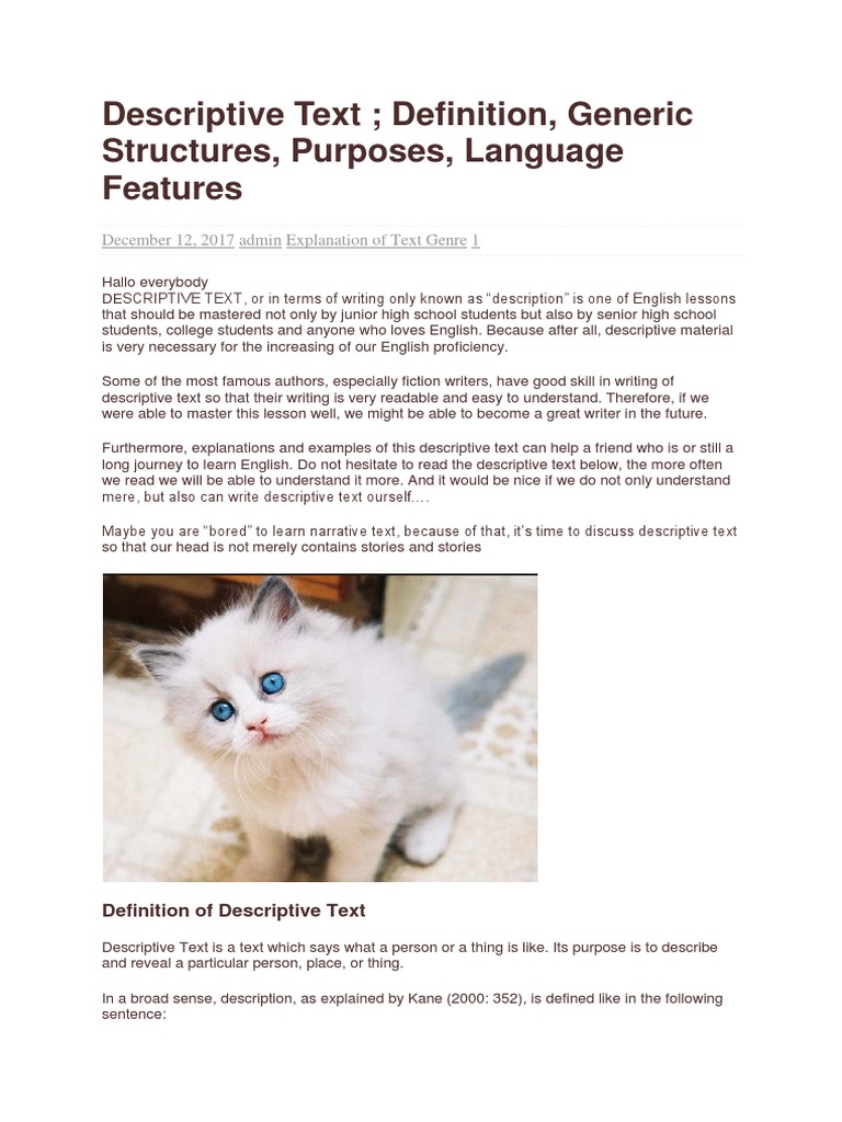 Descriptive Tex1 2 Pdf Garlic Foods from imgv2-1-f.scribdassets.com 3 october 2011 by rosalia. Descriptive text about animal beserta artinya. Descriptive text function explain about animal, person, or place that describe parts, qualities or characteristics. Jika kamu memang kesulitan untuk membuatnya. 48 contoh descriptive text hewan dalam bahasa inggris dan artinya. Sebelum kita ke pembahasan sahabat ulat semua harus faham betul bahwa tujuan dari descriptive text adalah mendeskripsikan atau menggambarkan dan yang digambarkan adalah hewan, barang, seseorang, atau tempat, dan karena kita kali ini akan membahas cara mendeskripsikan hanya hewan saja. Mulai dari descriptive text, recount text, , narrative text, report text serta berbagai jenis teks yang lain. Ada juga yang buas/liar hidup di hutan atau kebun binatang misalnya jerapah (giraffe) serta gajah (elephant).